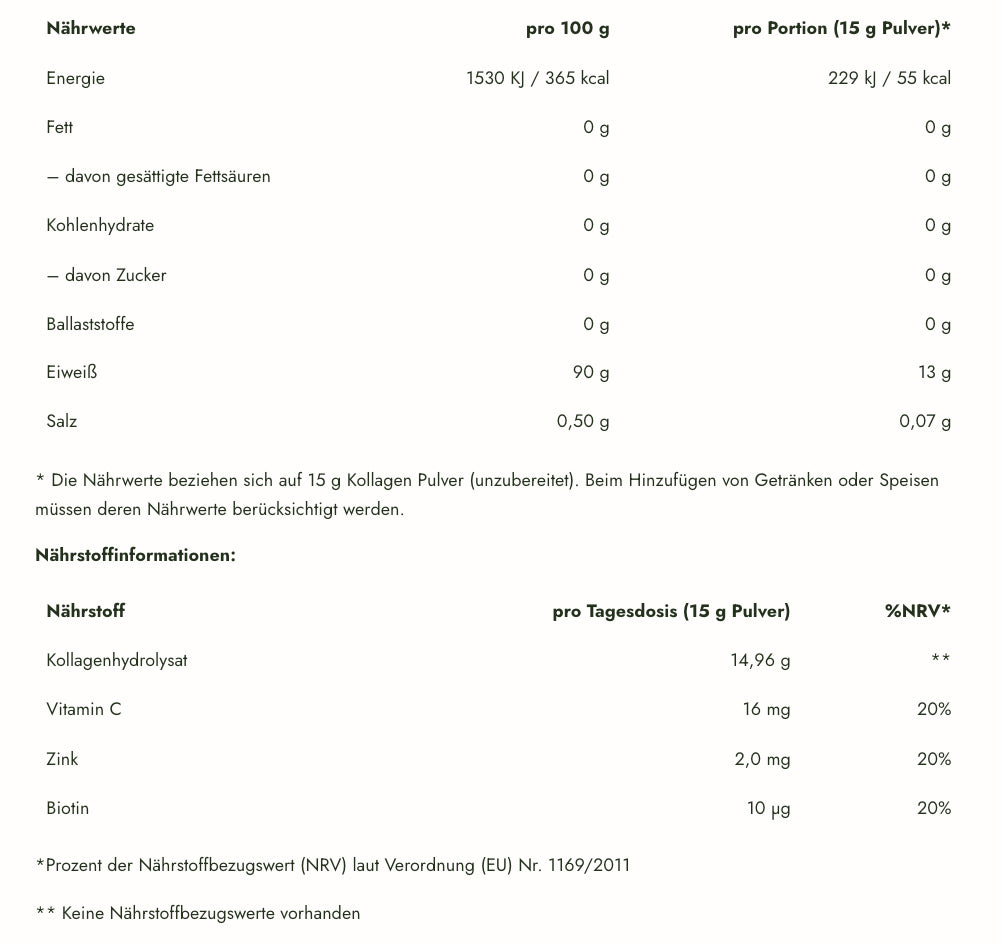 vereint Kollagenhydrolysat + Vitamin C + Zink + Biotin